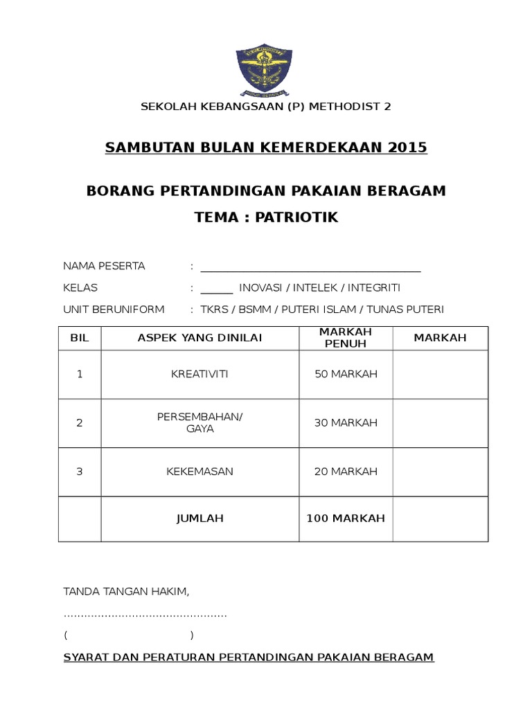 Borang Markah Pertandingan Pakaian Beragam Docx Otosection