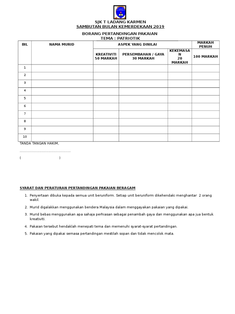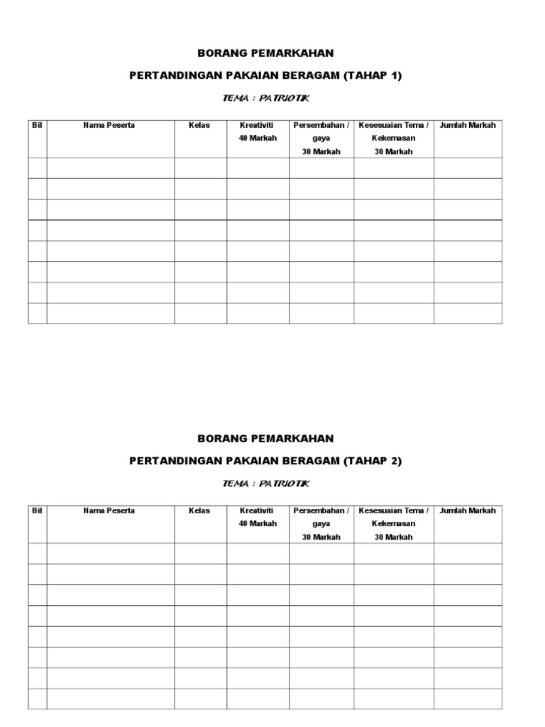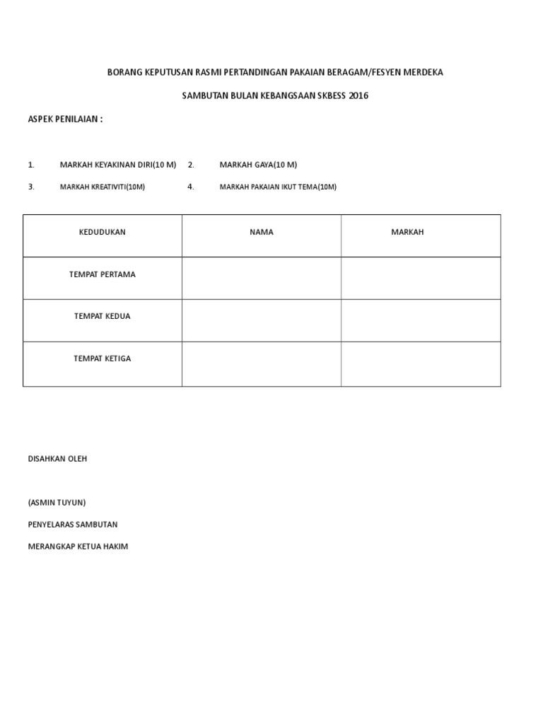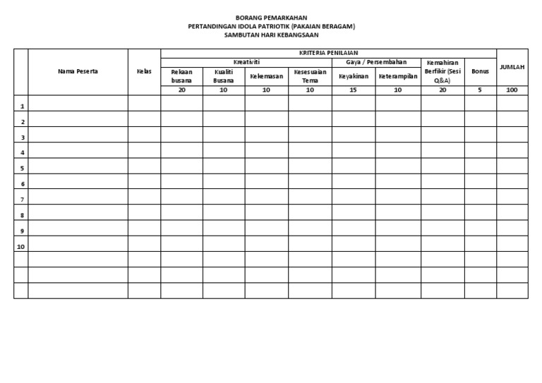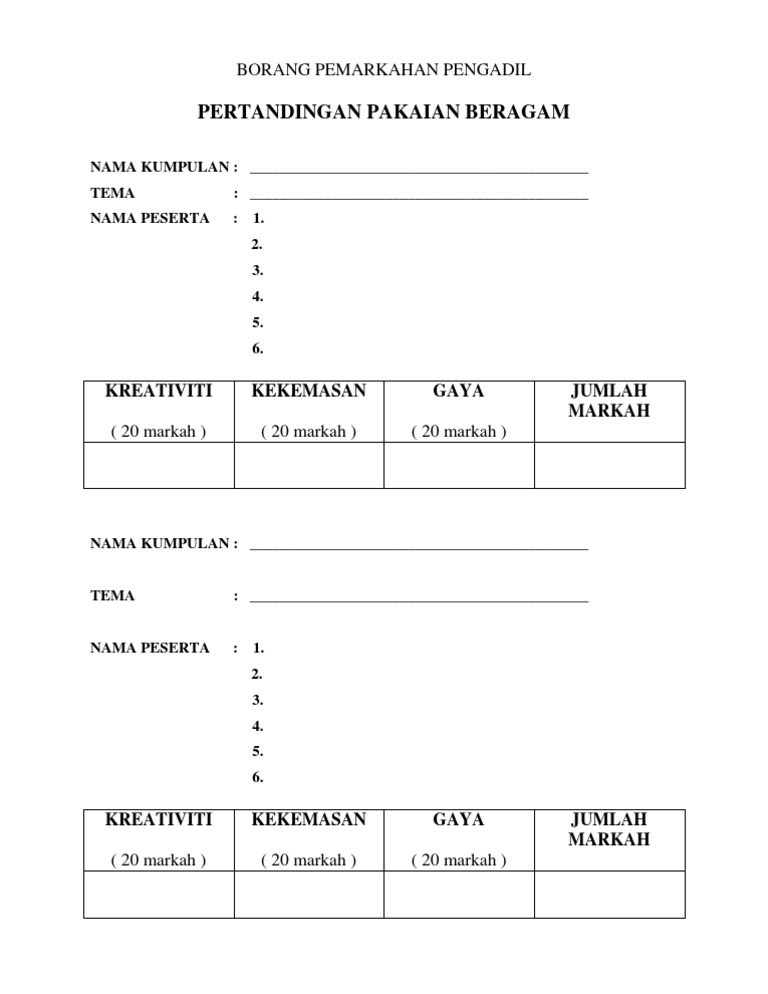 Borang Markah Pertandingan Pakaian Beragam Docx Download Documents