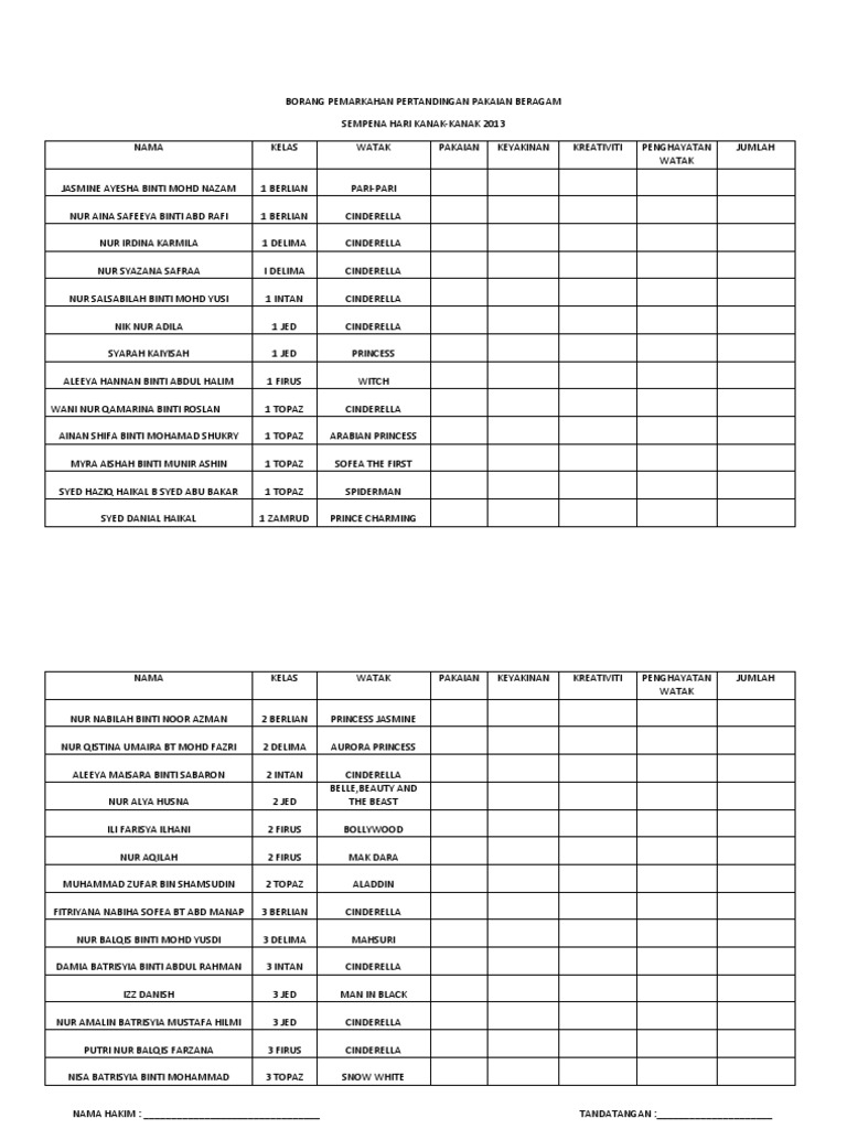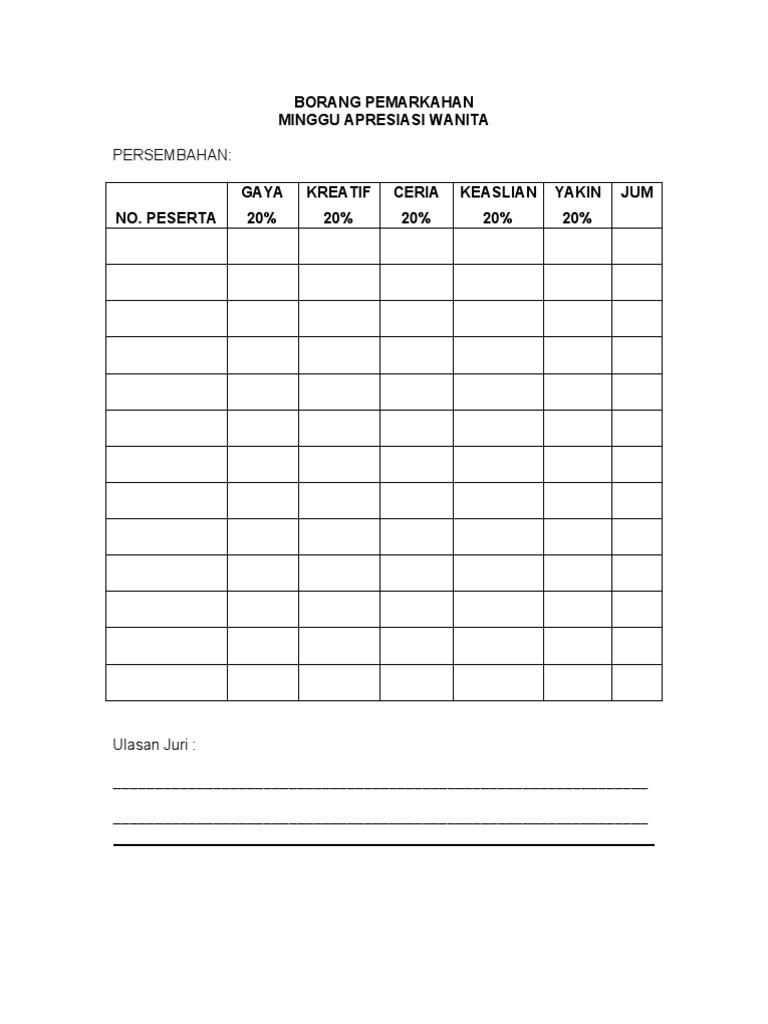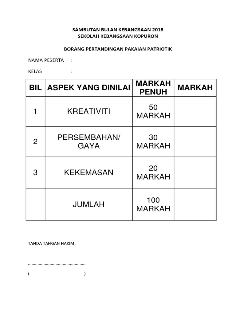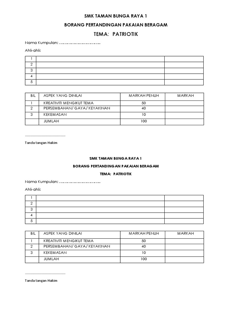 Borang Markah Pertandingan Pakaian Beragam Docx Download Documents